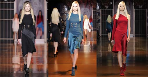 ¡Al hombro! ¡Ar! ¡Versace! el ejercito de modelos salió en charreteras, abrigos militares y bandas a desfilar por la pasarela. Donatella Versace cambió el va ...