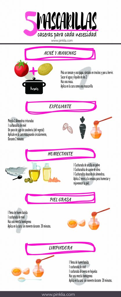 No importa si tu piel es grasosa, con tendencia al acné, sensible, seca o con manchas. Aquí encontrarás una mascarilla para tu piel. Las mascaras de belleza caseras permiten usar productos que en su mayoría ya tienes en la nevera o despensa y lo mejor es que son totalmente naturales. No tienes que preocuparte por parabenos o químicos. Ojo aquí lo importante es la constancia, consiente tu piel con una mascarilla por semana y ojalá hagas una vaporización en el rostro antes de aplicarla.