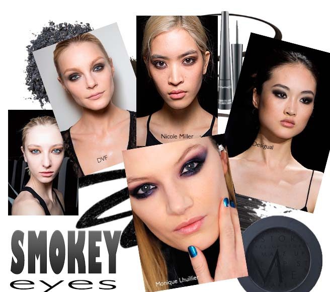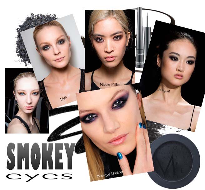 Con solo una línea de color metalizado en el párpado superior se puede lograr esta tendencia. Varios diseñadores usaron metalizados para resaltar los ojos. Rodarte lo hizo más dramático con cristales en el párpado inferior.