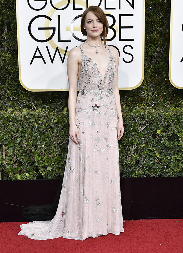 La gran ganadora de la noche, no solo se llevó el Golden Globe sino que brillo con un vestido de Valentino lleno de estrellas. ¿Alguna referencia a “City of Stars”? Es muy probable, sin embargo el maquillaje, peinado y vestido la hizo lucir delicada y femenina, look que personalmente me fascina.