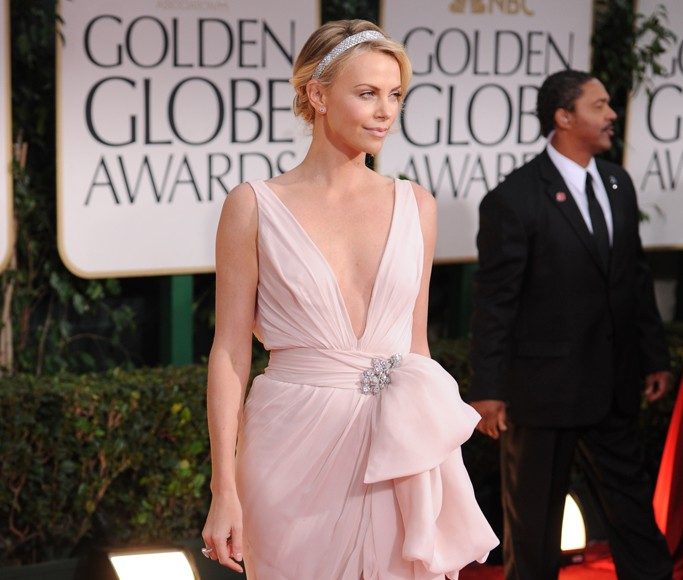 El nude fue el color de moda entre las estrellas, Charlize Theron brilló en este diseño de Dior que hacía recordar los gloriosos años 20.