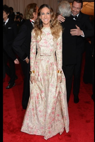 En esta oportunidad aunque el metálico fue el rey para Cameron Díaz, Sofía Vergara, Jessica Alba, Leighton Meester la mayoría de los vestidos tuvieron una reminisencia del pasado, Sarah Jessica Parker lucio con un vestido en flores tonos pastel, Kristen Dunst parecía sacada de un film noir de los años 40, Karolina Kurkova tenia un vestido con turbante que evocava la época dorada del cine, Ana Wintour llegó con un vestido estampado con una langosta dorada haciendo alegoría a la famosa falda de Elsa Schiaparelli.