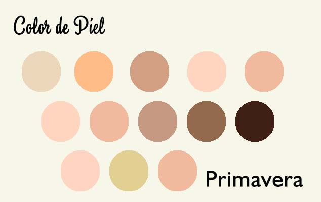 En general para una mujer de estación primavera la piel tiene un matiz dorado. El color de la piel puede ser marfil, durazno, durazno claro o beige dorado. Las mujeres a las que les luce los colores de esta estación pueden tener pecas doradas o mejillas rojizas y generalmente tienen una piel clara.