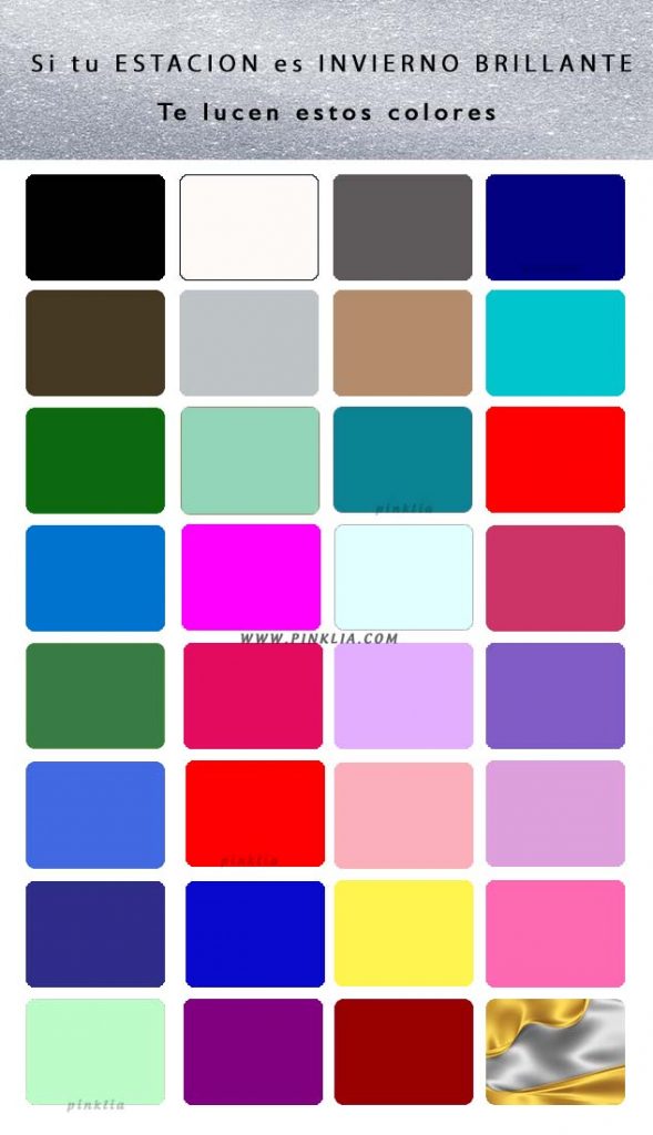 Los colores brillantes son tus mejores tonos, como el color de las piedras preciosas: azul zafiro, rojo rubí, verde esmeralda y amatista se encuentran dentro de tu paleta de color. Una combinación ganadora para un outfit es el blanco con negro, fucsia con negro o colores brillantes con oscuros. Puedes usar una amplia gama de color y estampados, pero evita los colores suaves y pasteles. Si quieres usar tonos delicados ve por colores gélidos como rosa y azul hielo. También evita los colores tierra.
