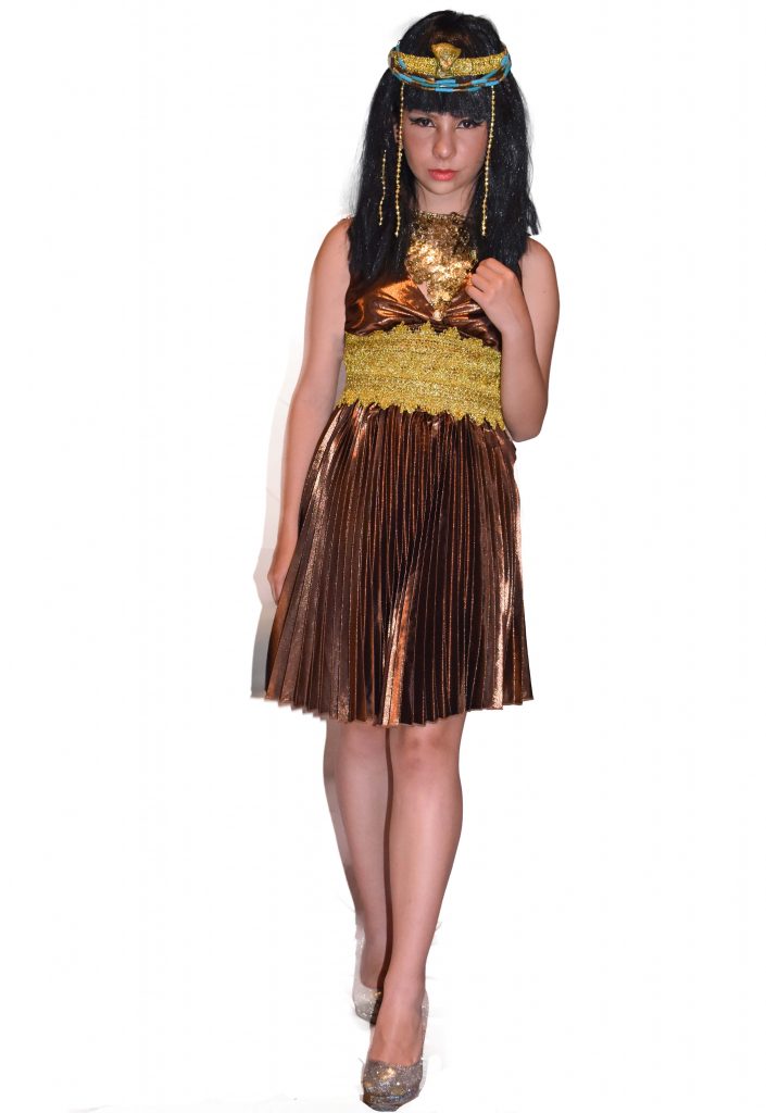 La reina más importante del antiguo Egipto no solo gobernó las ricas tierras de medio oriente, sino que ha sido referente de moda durante todas las épocas. Con un vestido plisado en tonos metálicos, negro o blanco, un collar babero, brazaletes y pulseras doradas, una peluca con estilo bob o lob, tacones, un maquillaje smoky eye bien acentuado y mucho delineador estas lista para la fiesta.