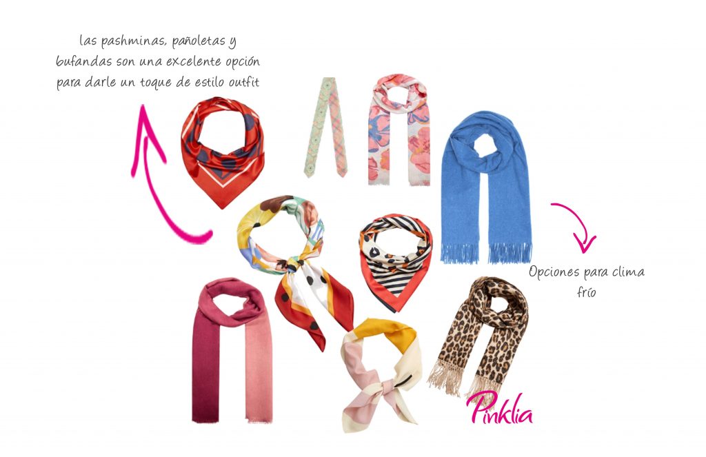 Bufanda o pashminas son infaltables para darle luz al rostro. También son ideales para madres con bebes. Cuando los niños están muy chicos, los colores y las texturas le llaman mucho la atención, entonces agarran los aretes y collares. Toda mamá que tiene o ha tenido hijos en estas edades sabe que usar aretes o collares llamativos son una tortura. Las pashminas o bufandas son la mejor opción para darle un poco de color y personalidad a tu look. Existen muchas opciones, inclusos para los climas más cálidos.