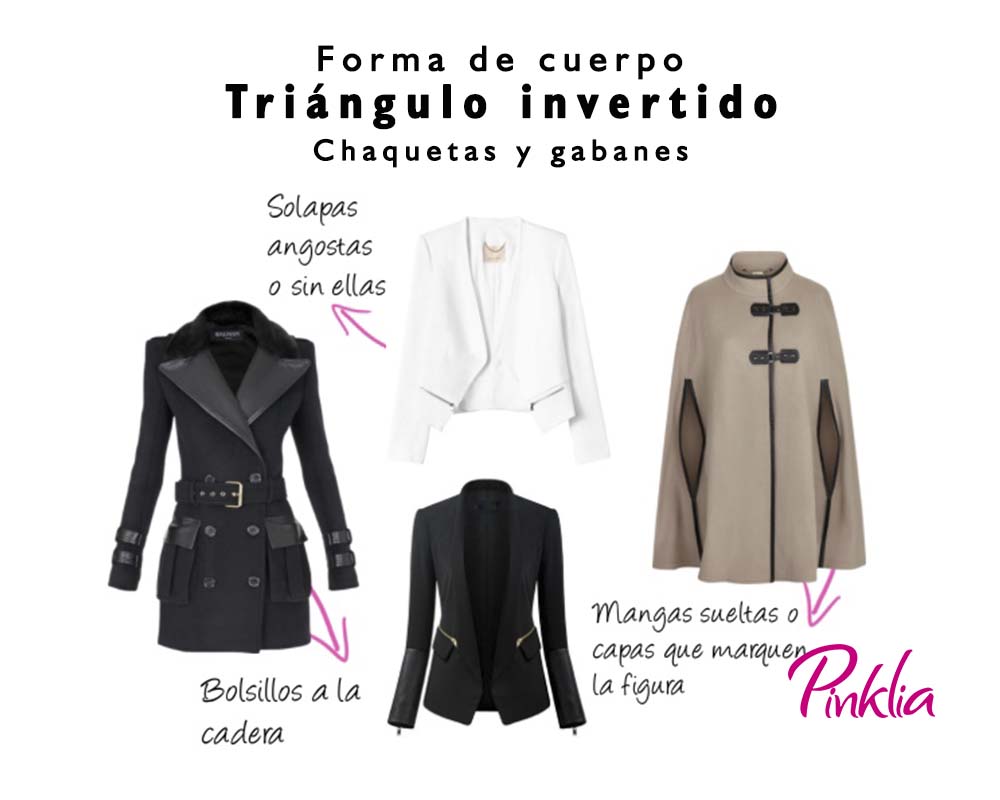 Las chaquetas con solapas angostas o sin solapa te hacen ver mejor figura. Gabardina o gabanes con bolsillos a la altura de la cadera te hacen ver mas curvilínea.