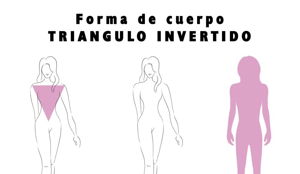 La forma de cuerpo triángulo invertido se caracteriza por tener los hombros más anchos que las caderas. ¡Ojo!, no significa que la cintura sea recta. Una mujer con forma de cuerpo triangulo invertido puede tener una cintura estrecha y aun así la parte más llamativa será los hombros.