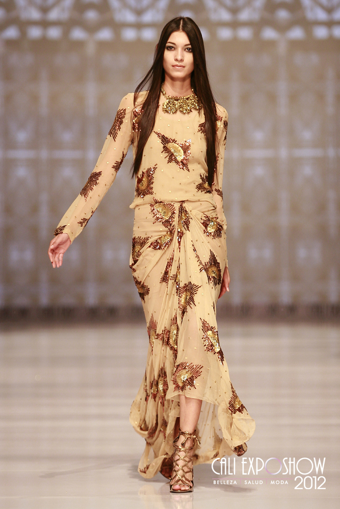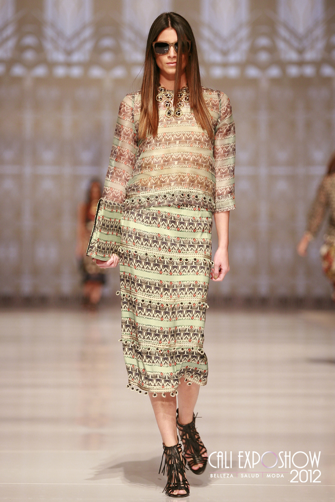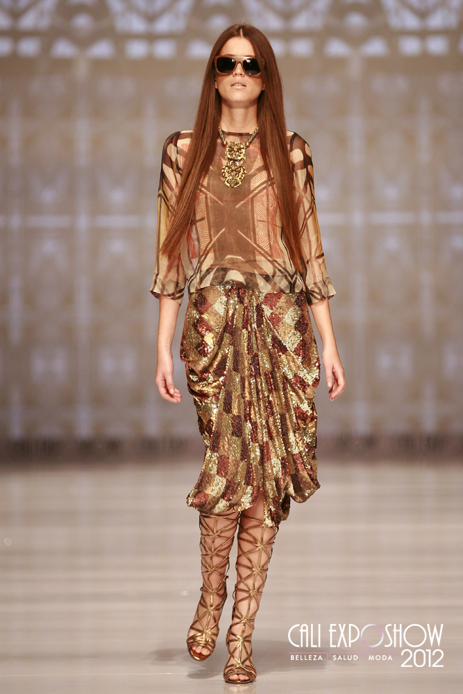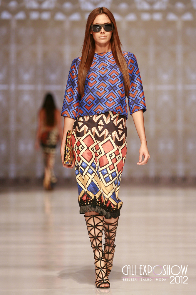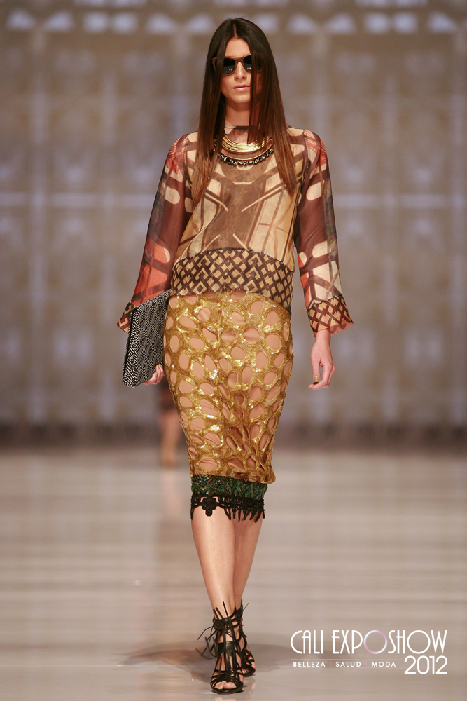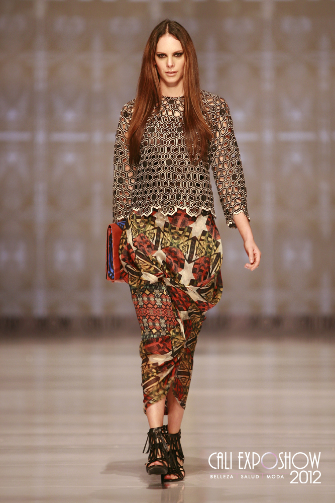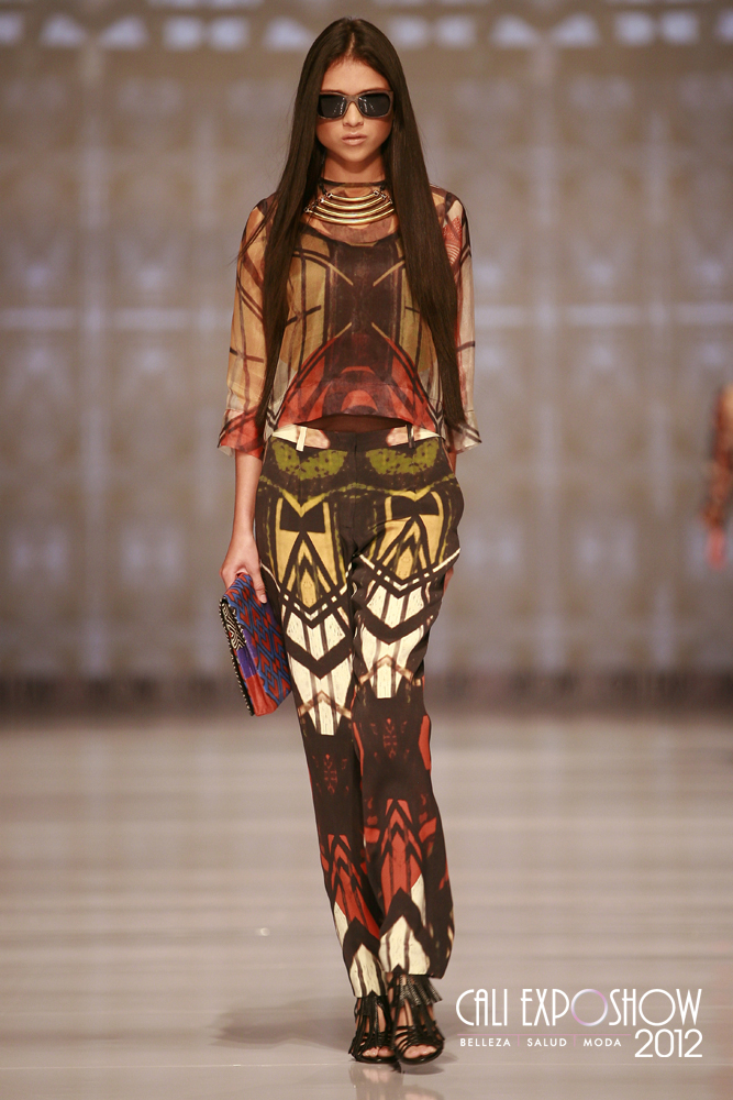 La diseñadora Cartagenera brilló con su colección en tonos tierra resaltando el estampado geométrico de las telas y la riqueza de los mismos, mas que los cortes y las siluetas de las prendas siendo impecables también. En el Cali Exposhow pasarela Beatriz Camacho la diseñadora se inspiró en la comunicación a través de las figuras al inicio de los tiempos, por eso los estampados geométricos cobraron gran importancia en esta pasarela. Beatriz Camacho logró una mezcla entre lo tribal y lo chic con prendas estructuradas y versátiles para combinar.