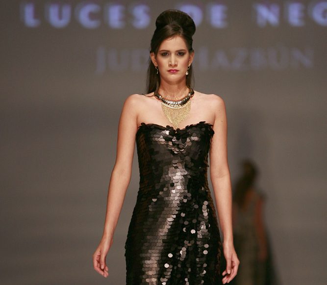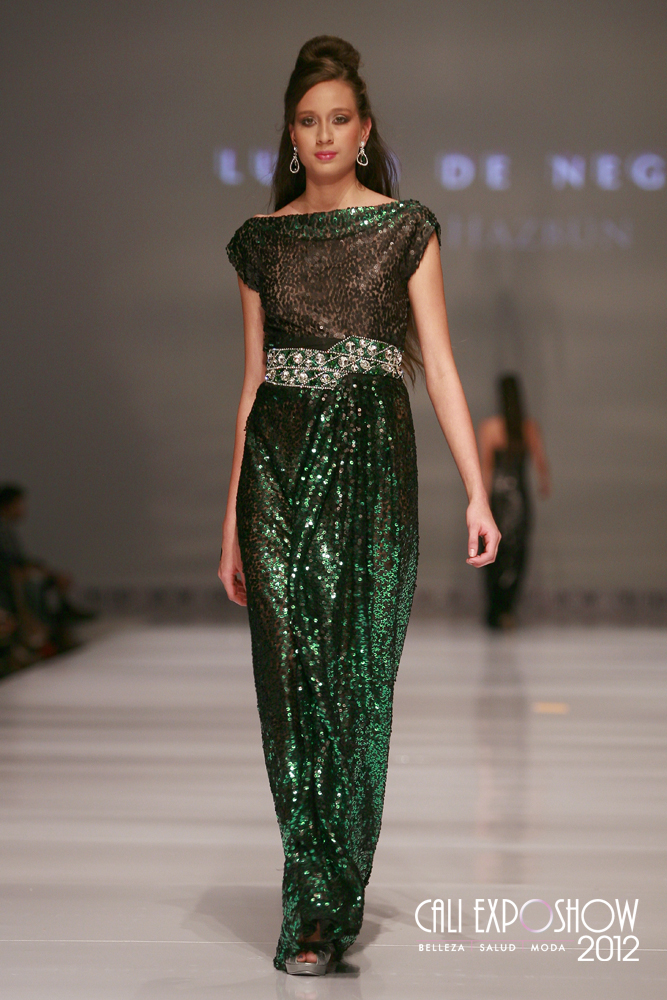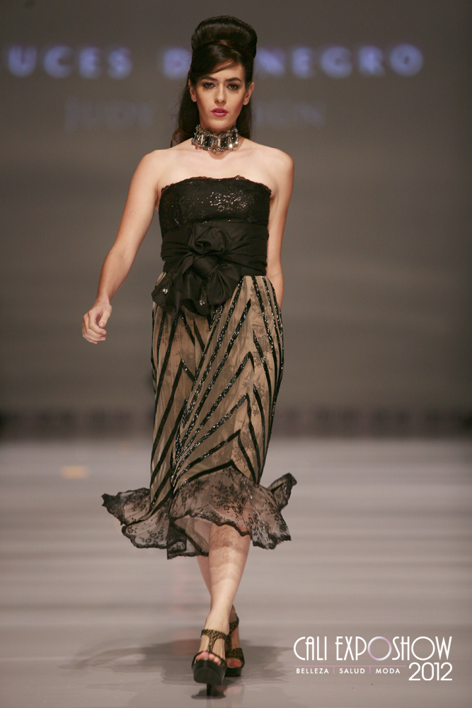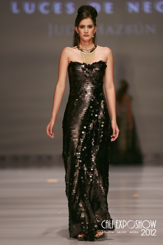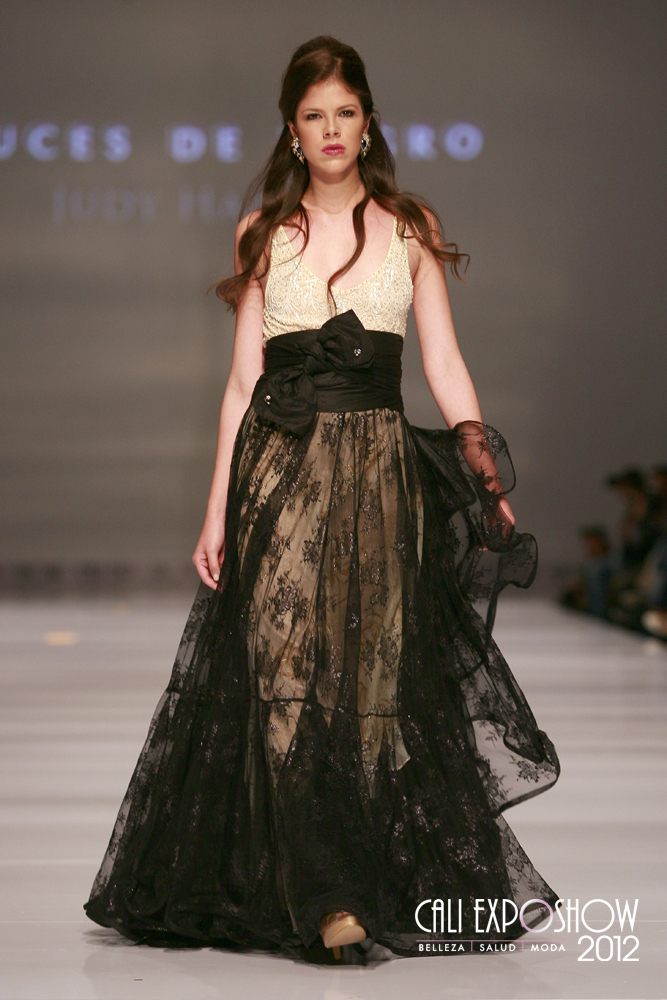 La diseñadora Judy Hazbún realizo una colección para la noche llamada “luces de negro” con mucho brillo. En el Cali Exposhow pasarela Judy Hazbún se vio una colección inspirada en la sensualidad femenina y el deseo de toda mujer de ser el centro de atracción. Las prendas estuvieron confeccionadas en telas como Shantung, seda y tafeta con detalles en lentejuelas plumas y encajes, también se vieron mucha transparencias.