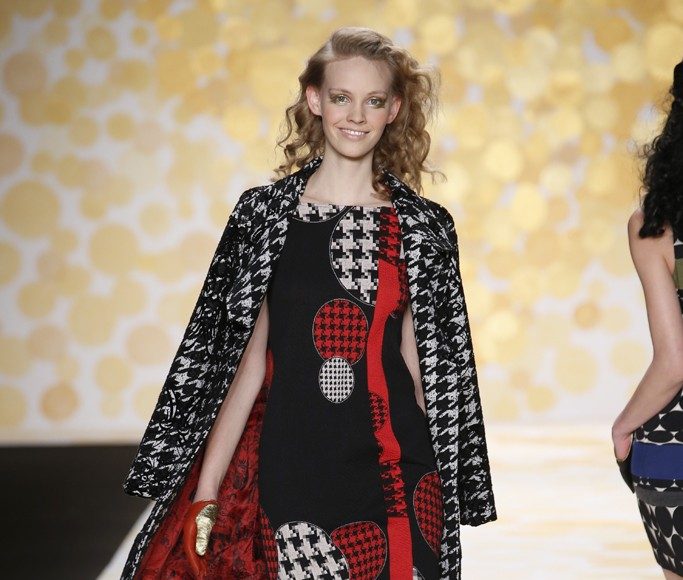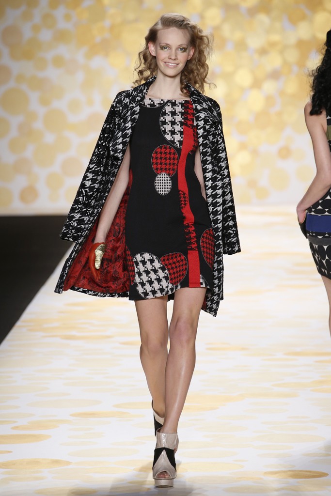La mayoría de vestidos siguen la linea de la marca, caracterizada por colores brillantes y fuertes contrastes. El denominador común fue blanco y negro con un poco de color. la colección estuvo llena de vestidos cortos y algunos vestidos abajo de la rodilla, eso sí bien ajustados al cuerpo.