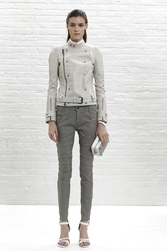 Diesel Black and Gold, para su tercera colección resort 2014 se inspiró en uniformes y prendas de dotación, logrando un look chic y moderno. Prendas como una chaqueta con cierres metálicos y adicciones en cuero – donde los uniformes llevan reflectivos – y jeans estampados. El denim es la columna vertebral de esta marca utilizado en esta colección de una manera estilizada para dar mejor silueta al cuerpo.