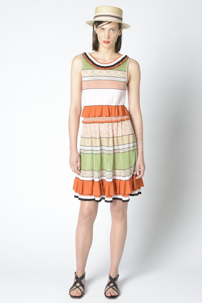 Missoni, Se inspiró en el destino preferido de las celebridades Saint Tropez , con una onda chic y casual en las prendas de su colección resort 2014. Entre las prendas mas llamativas se vio un vestido a rayas en colores cálidos y un vestido estampado amarillo plisado realzando la forma del cuerpo con un cinturón.