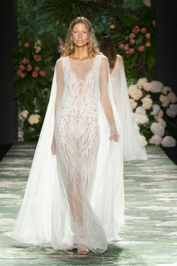 Dentro de la pasarela se vieron bellos trajes de novias, al son de Canon in D. vestidos bordados en canutillos, corte sirena y con apliques en los hombros.