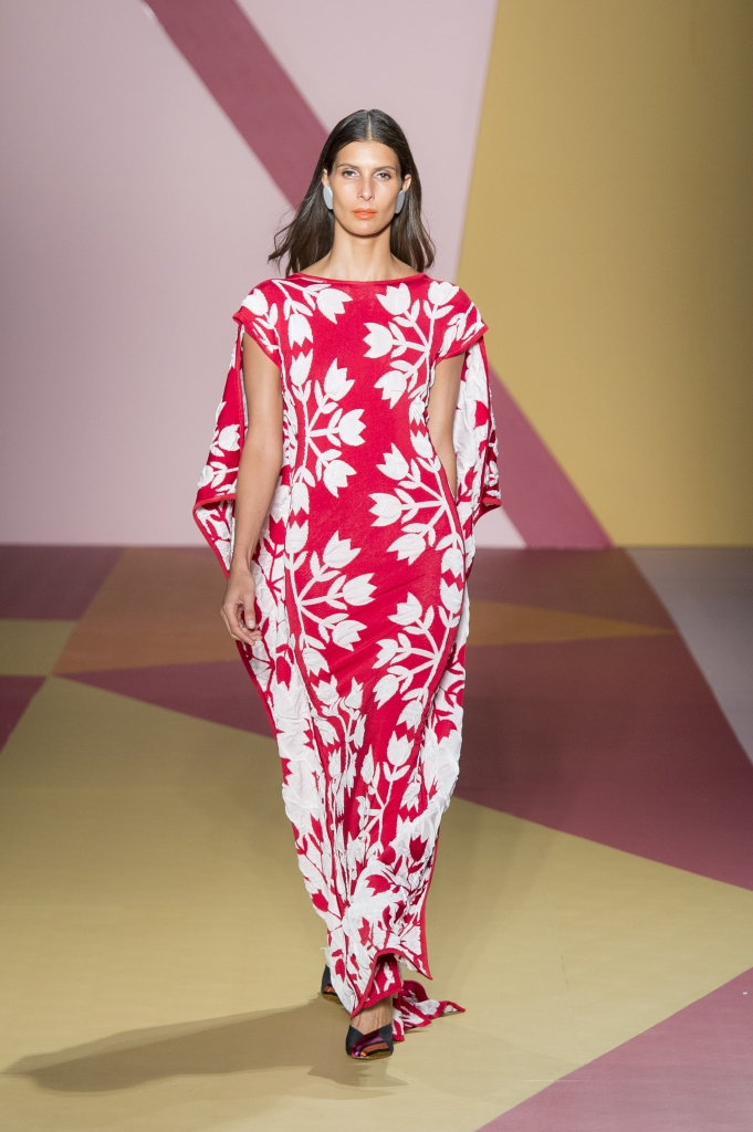 Pepa Pombo es una marca con un sello único, el manejo de textiles y tejido de punto son las características que destacan en cada uno de los diseños. En esta colección nos llevó por un mundo de colores vivos, donde los estampados en forma de flor de loto y tulipanes nos hablan de la pureza y el amor perfecto, lo que se vio fue la perfección que lleva desarrollar casi 40 años el tejido.