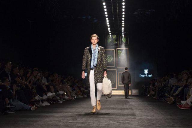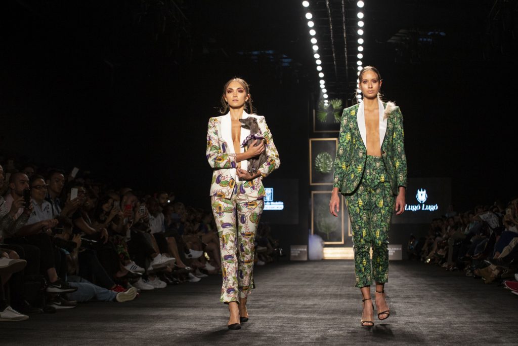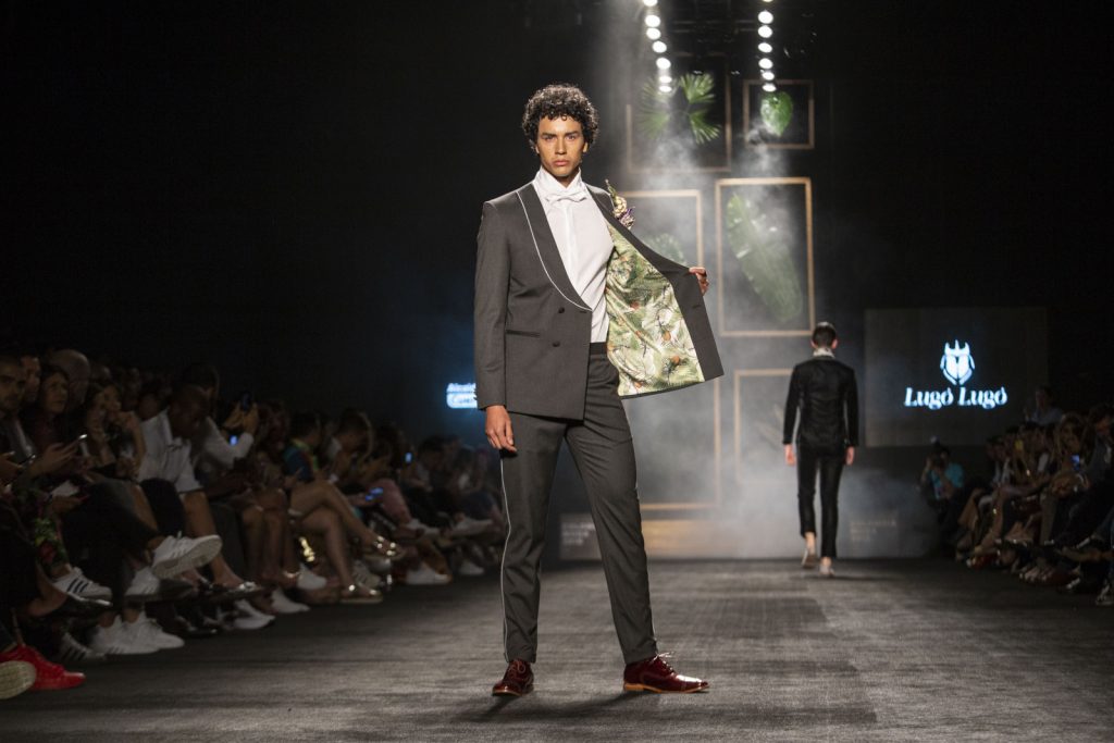 La propuesta de los hermanos Lugo conformada smokings, suites, levitas, fracs y bañadores masculinos, para la época de verano fue impactante por sus vivos estampados, manejo de telas como el terciopelo en algunas de sus propuestas y la combinación de estampado sobre estampado.