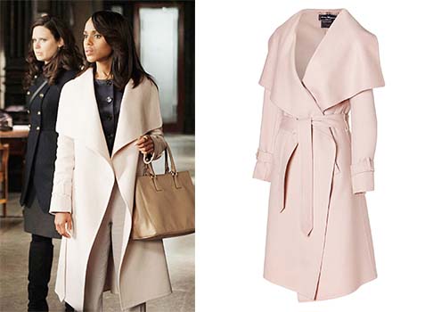 En este momento el estilo bata es uno de los más famosos, debido al éxito de la serie Scandal y el buen gusto que tiene Olivia Pope (interpretada por Kerry Washington), en la serie se ve a Olivia Pope en una gabardina de formas fluidas, solapas anchas y un cinturón como el de la bata de baño en color rosa pastel. Este estilo de gabardina que se puede ver formal o casual dependiendo con que se lleve. Aunque la gabardina de Olivia Pope es Salvatore Ferragamo en Mango y Banana Republic se puede conseguir el mismo estilo.