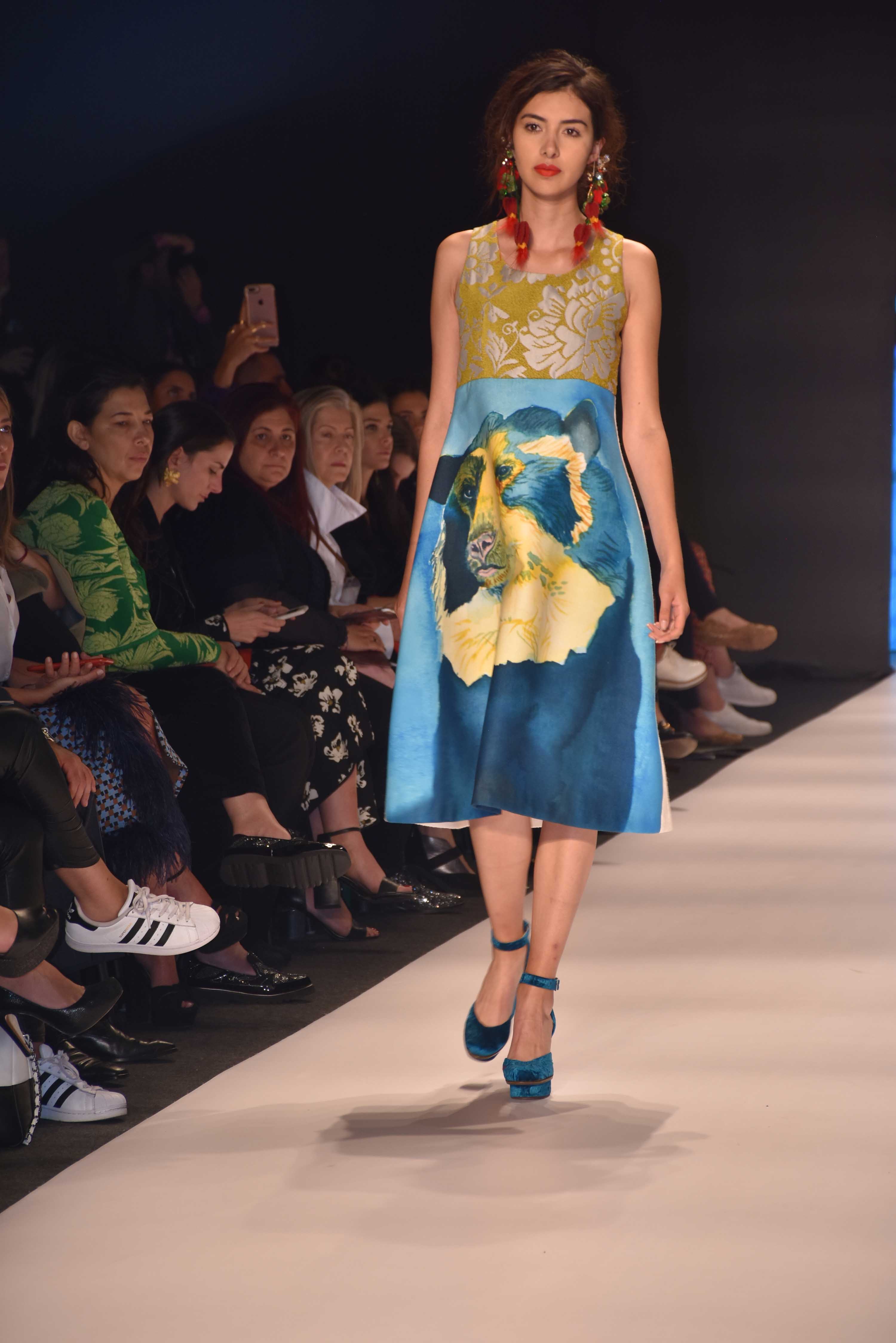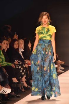 Las pasarelas que siguieron después de eso, me siguieron sorprendiendo. Desde la de Lina Cantillo, donde utilizó solo tonos rojos para sus prendas, hasta Custo Barcelona, con sus chaquetas y pantalones psicodélicos y brillantes. El miércoles, llegamos a las 3 de la tarde. Pudimos visitar el Showroom y entrevistar a la diseñadora de zapatos Julieth Estrada.