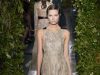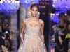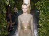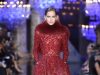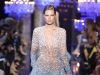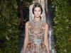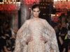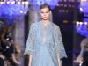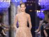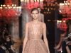 La colección de Elie Saab es lo más hermoso que se haya visto esta semana. El diseñador se enfocó en prendas para la alfombra roja, probablemente las veremos en los próximos eventos del cine y la música. El show inicio con vestidos largos y de coctel recamados de color azul hielo en muselina de seda y tul. Luego salieron a la pasarela una serie de vestidos en tonalidades rosadas, bronce, negro, gris y blanco. La mayoría con un gran trabajo de recamado en lentejuelas y Swaroski. E l diseño más impactante fue un hermoso vestido teñido de tres tonos distintos y las flores.
