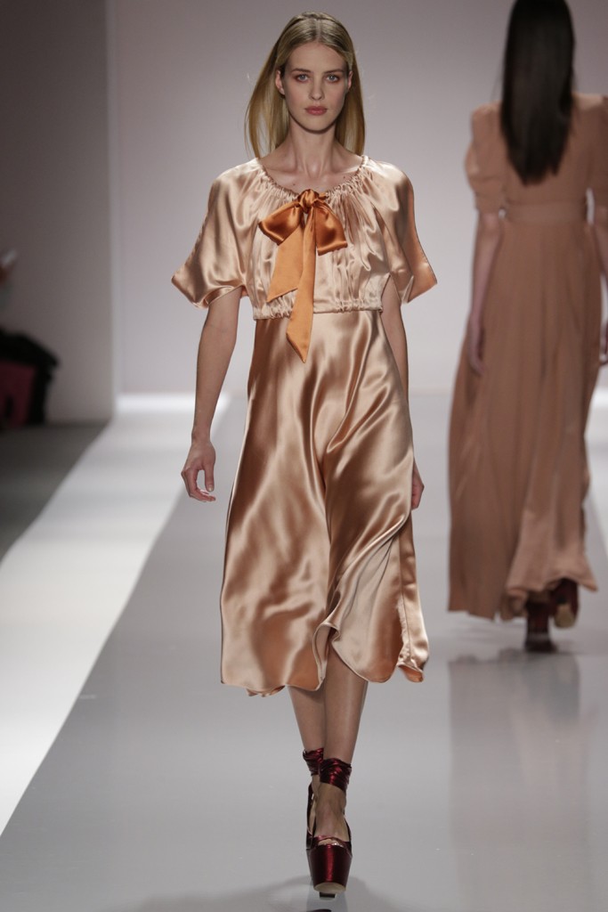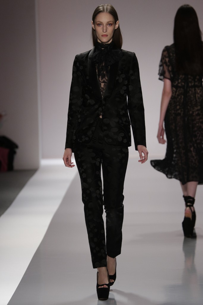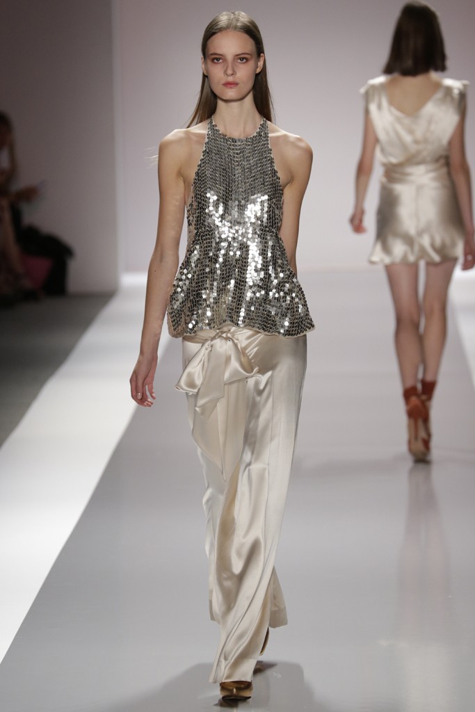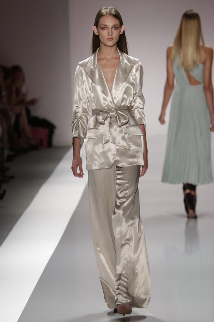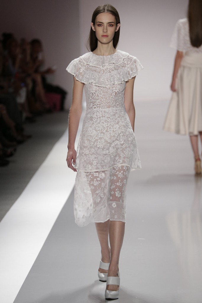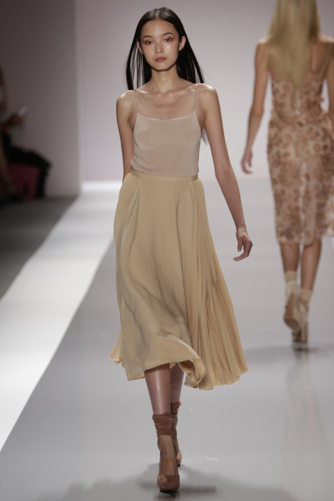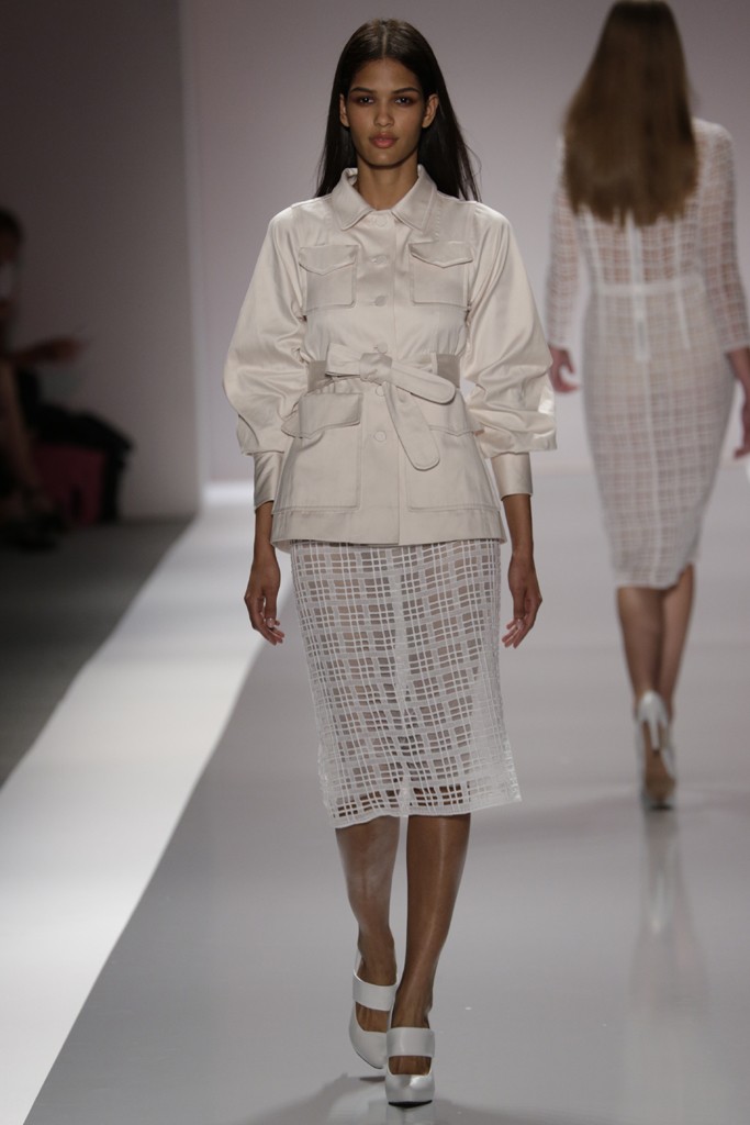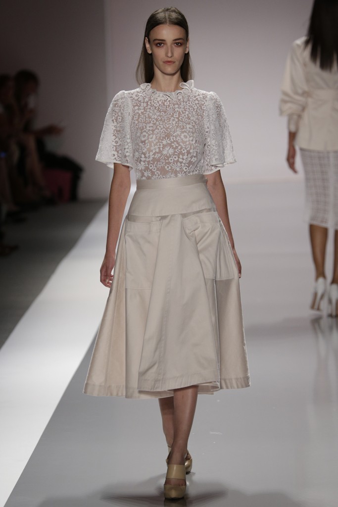 Jill Stuart presento una de las pasarelas más femeninas y románticas de la semana de la moda en Nueva York, definida por prendas confeccionadas con encajes, plisados, brocados y lentejuelas. También se vieron pantalones con telas sedosas y gabardinas ajustadas a la cintura, una moda muy femenina. Las formas de las prendas femeninas enmarcan el cuerpo con faldas rectas y blazer entallados para Jill Stuart el próximo verano.
