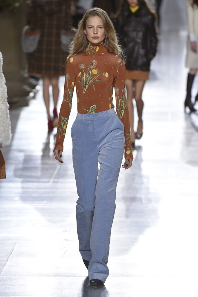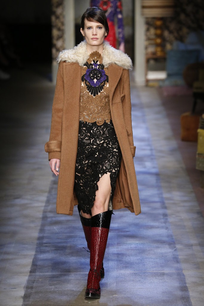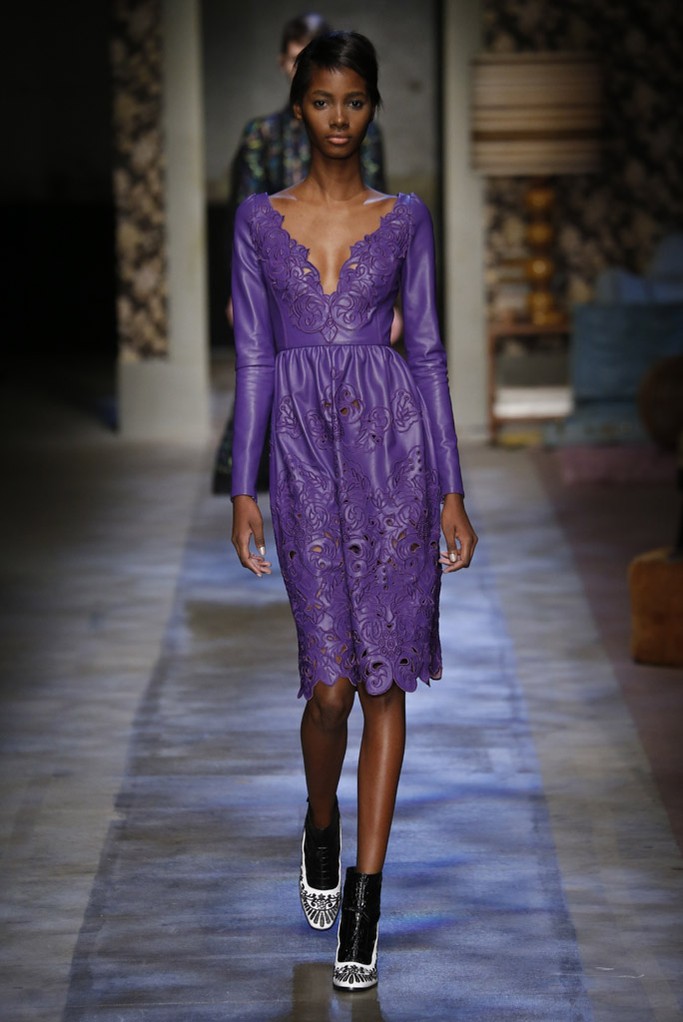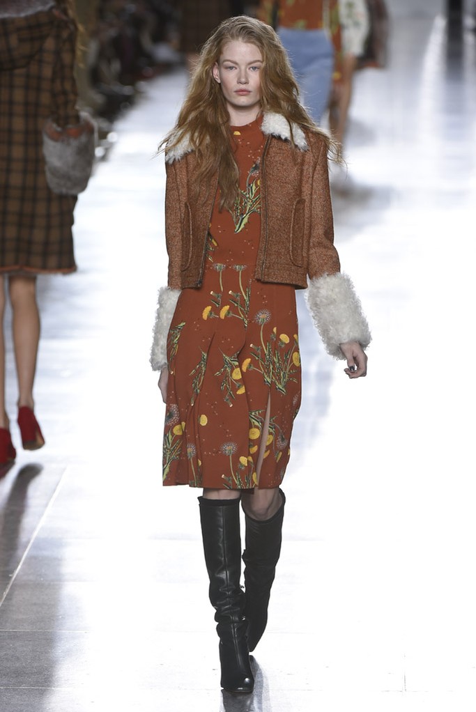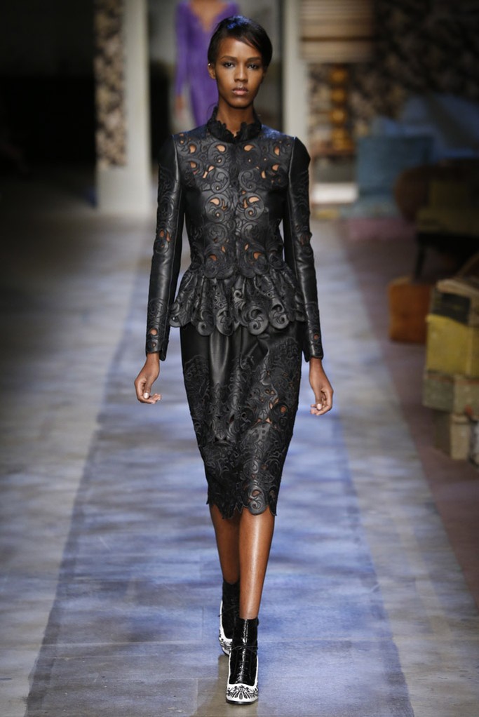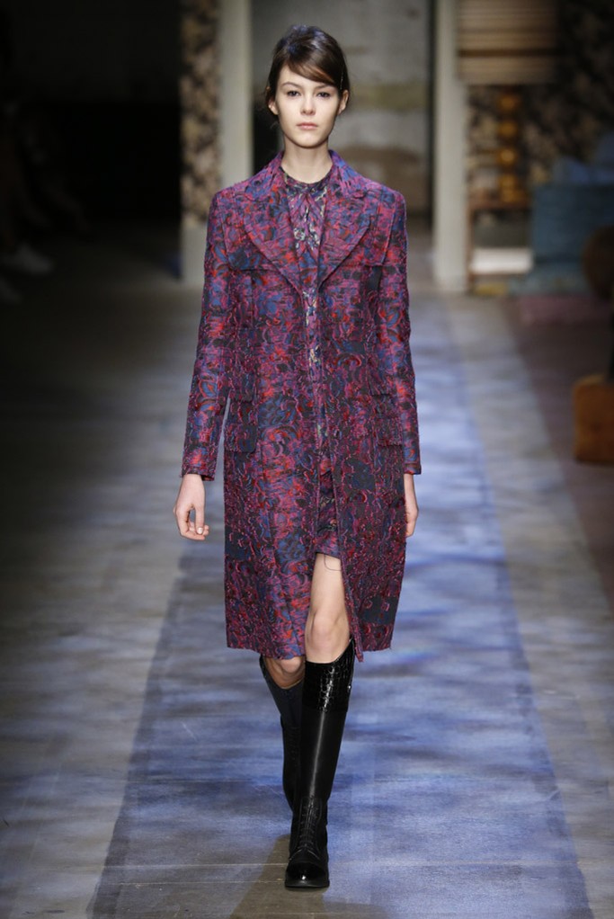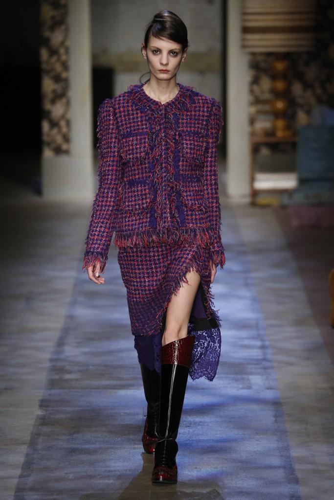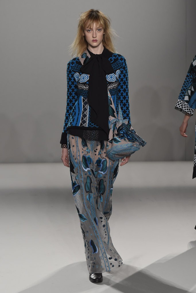 Con una onda barroca y muy romántica Erdem presento una colección cargada de estampados en formas de hojas y los colores de la naturaleza. Se vieron vestidos en jacquard metalizados con faldas en A y diferentes texturas que dan un efecto 3D a las prendas.
