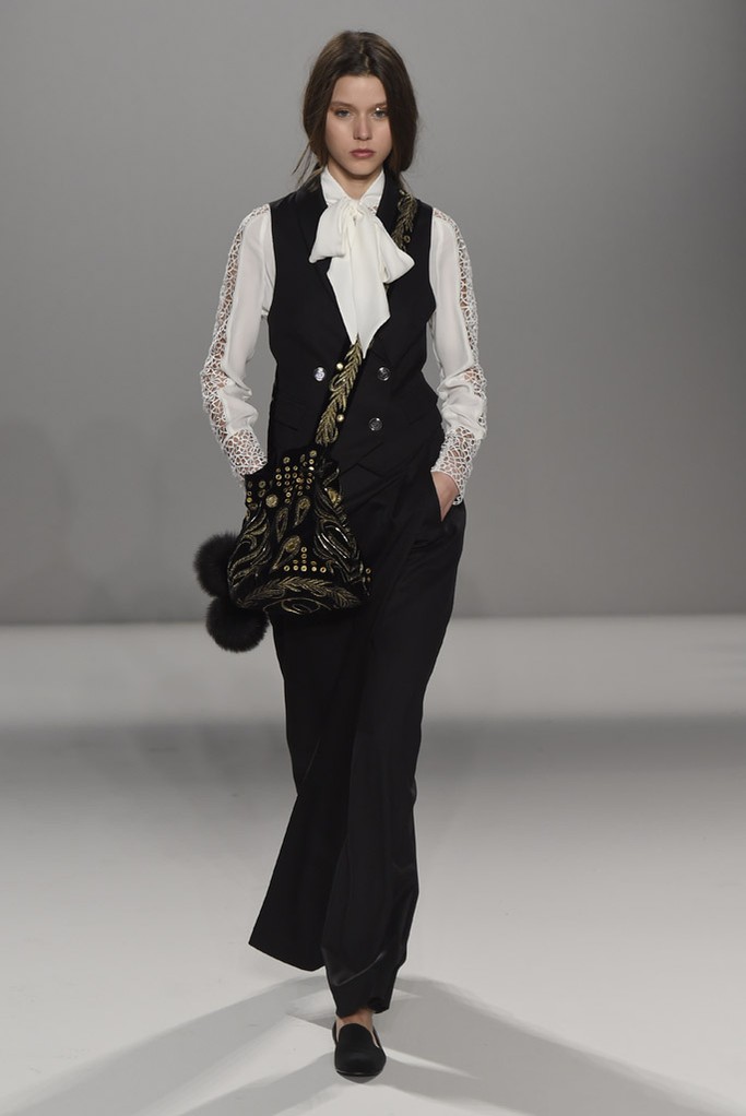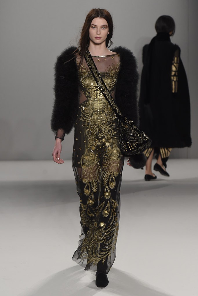 Una de las marcas preferidas por las celebridades de Hollywood mostró una colección con un marcado estilo setentero: pantalones altos, botas de caña alta con minifalda, jumpers y cuadros estilo country para el día. Para la noche telas metalizadas, faldas con abertura en la pierna y plumas en vestidos cortos. Eso sí una colección muy abrigada para el frío de invierno.