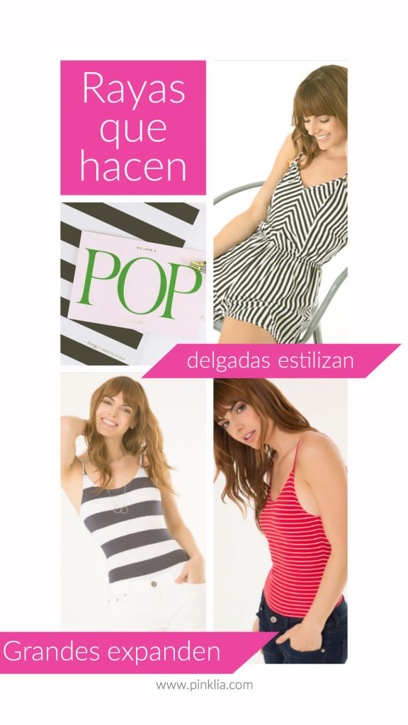 Siempre vienen de moda, pueden ser verticales, horizontales o diagonales y lucen muy bien si sabemos cuál es el grosor que más nos conviene. Las rayas horizontales gruesas hacen que la parte del cuerpo donde sean colocadas se vea más gruesa (expanden) y las delgadas verticales estilizan. Si una mujer tiene forma de cuerpo pera; una blusa de rayas horizontales gruesas le va a dar más volumen a espalda y torso llevándola más cerca de una forma de cuerpo X o reloj de arena.